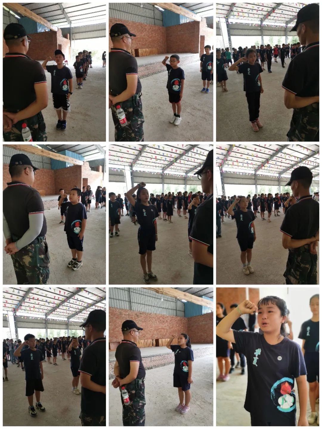 鼓声还萦绕在耳边,教官和孩子们回顾开营誓言,又向他们提出了新的人生问题——理想。只见孩子们一个个眼神坚定,右手在耳边握拳,大声对着教官宣誓:“我宣誓,我是领导者**,我的理想是成为一名人民教师、医生、护士、科学家、篮球运动员……途中不管遇到任何困难,我都将坚持到底,绝不放弃。”可是冷酷的“魔王”教官却不满意:“回去!”一声声的“回去”没有将孩子们的斗志打败,他们一次次来到“魔王”教官前坚定地说着自己的誓言,在一次又一次庄严的宣誓声中,他们的人生目标越来越清晰,也更加笃定!