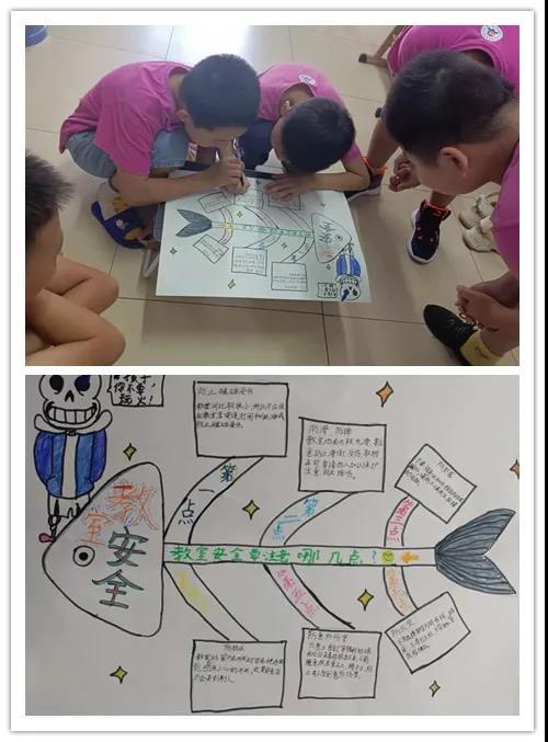 到了教室要注意哪些安全?小龙仔们又主动积极地开始讨论了:一、教室空间比较狭小,不应该追逐打闹,防止磕碰受伤;二、地面光滑,要防止滑倒,取高处的物品时请他人加以保护,防止摔伤;三、不要将身体和头探出阳台或窗外,谨防不慎坠落;四、教室的窗户开关时要小心,以免夹伤自己或他人的手指;五、剪刀、图钉等锋利文具应妥善存放,防止意外伤害;六、防火灾,不带打火机、火柴等危险物品进入校园……小龙仔们统合综效,老师都不由得惊叹:“学到了,学到了!”