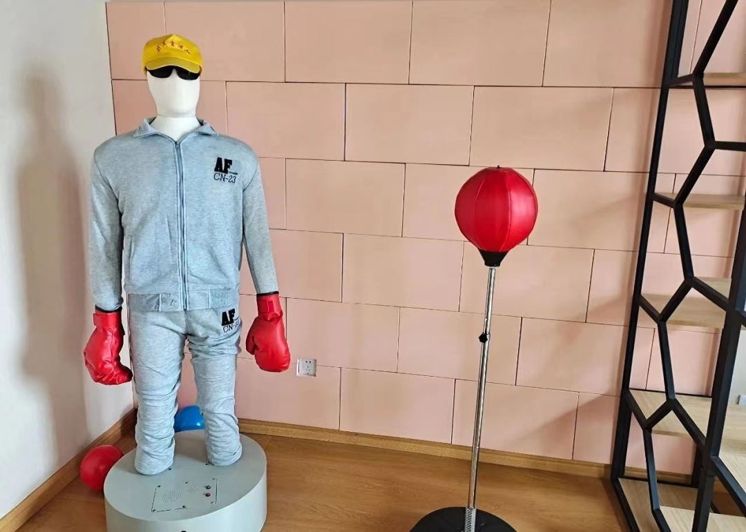 如图所示,宣泄区包括了一个仿真宣泄人、宣泄球以及没有入镜的宣泄棒,为了保护大家,还设立了一块宣泄保护墙。宣泄区可以宣泄我们的不良情绪,释放我们的内在压力。
