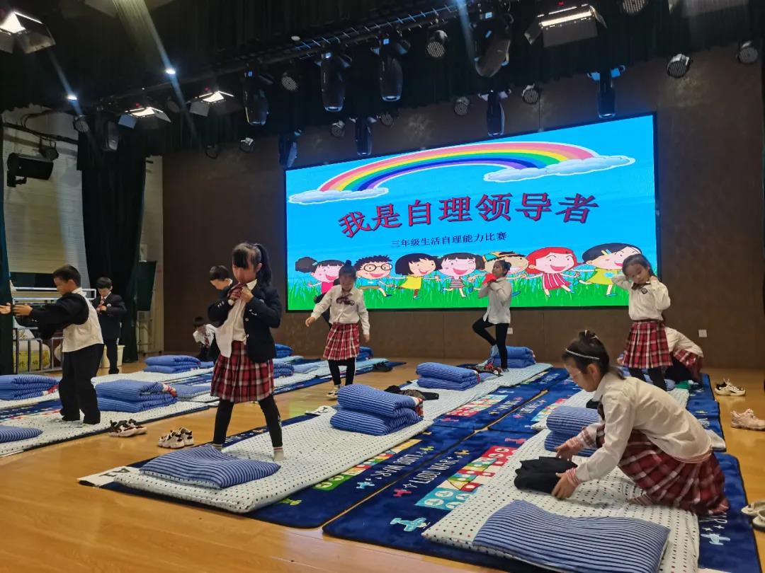 秋高气爽,金桂飘香,漫步在华夏诗一般的校园里,朝气蓬勃的小龙仔毫不逊色屋顶农场里那肆意生长的花卉绿蔬。当夜幕渐渐降临的时候,生活楼里异常热闹,空气里不但飘荡着沐浴露的芬香,还隐隐透着一股“剑拔弩张”的气息,这种氛围已有月余之久。温馨的幸福梦想家发生了什么?原来是三年级的小龙仔们要进行“我是自理领导者”活动比赛啦。