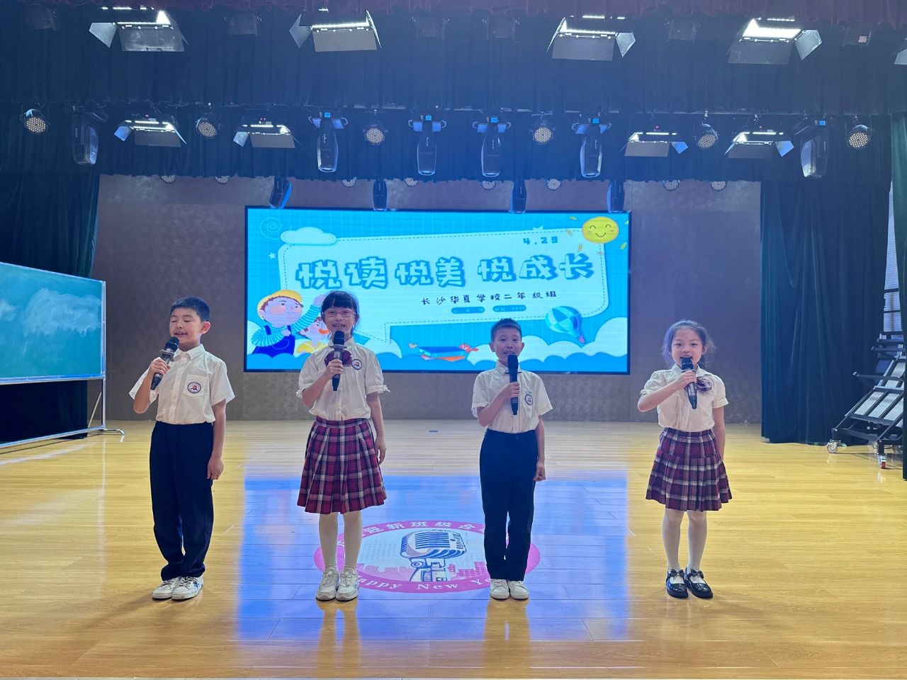 4月29日晚,二年级全体师生齐聚梦想馆,四位小小主持人闪亮登场,拉开了读书节闭幕式暨表彰活动的帷幕。
